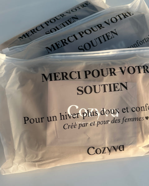 Conçus par des femmes et pour des femmes, ils sont faits pour ne jamais s’effiler, vous garder bien au chaud, et tenir parfaitement en place. Préparez-vous à un hiver plus doux et confortable, avec Cozyva à vos côtés.
